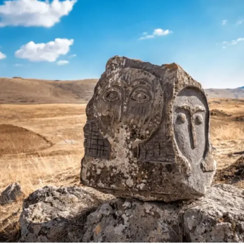The name Karahunj is believed to derive from two Armenian words: car/kar meaning “stone,” and hunj (or hunge) meaning “sound.” Due to its location and the constant presence of wind, the stones make a whistling sound—thanks to multiple holes carved into them at different angles during prehistoric times.